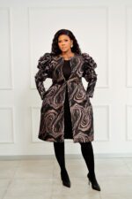 FABRICATION: BROCADE, FULLY LINED COAT, WITH SIDE ZIP ON THE WRIST FOR COMFORT AND HAS SIDE POCKETS