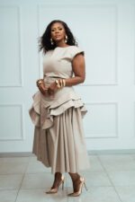 The Malika Skirt is a celebration of bold femininity, designed for the woman who embraces presence and movement. Crafted with dramatic volume and a sculptural peplum detail on the skirt, this silhouette creates a striking yet refined statement.