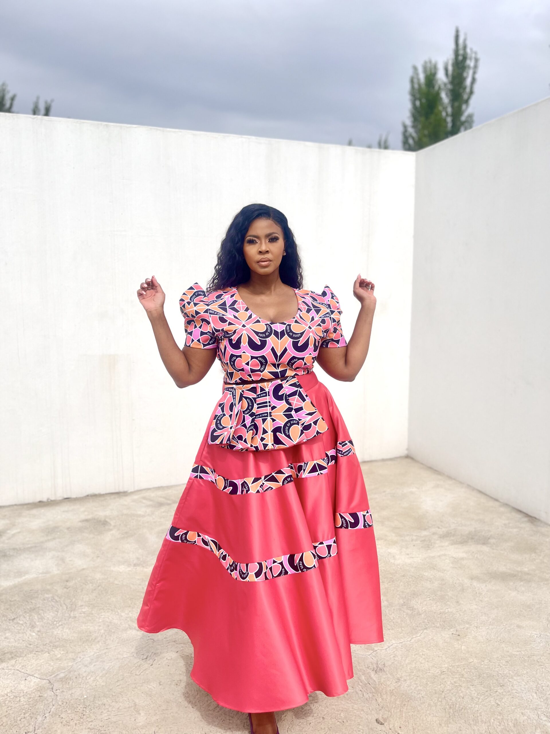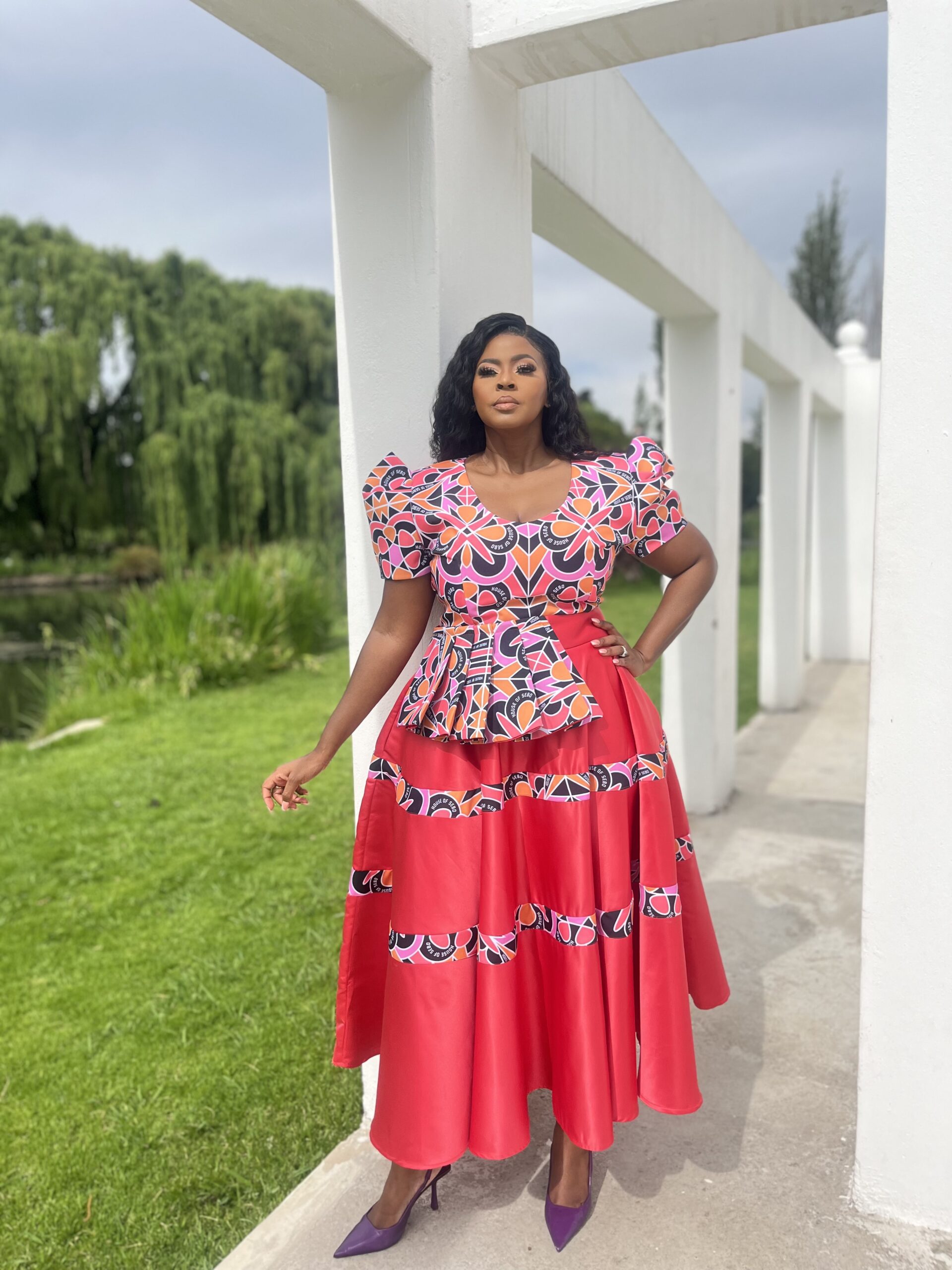 Includes an attached peplum and Top that is branded with House of Sebo Exclusive Print